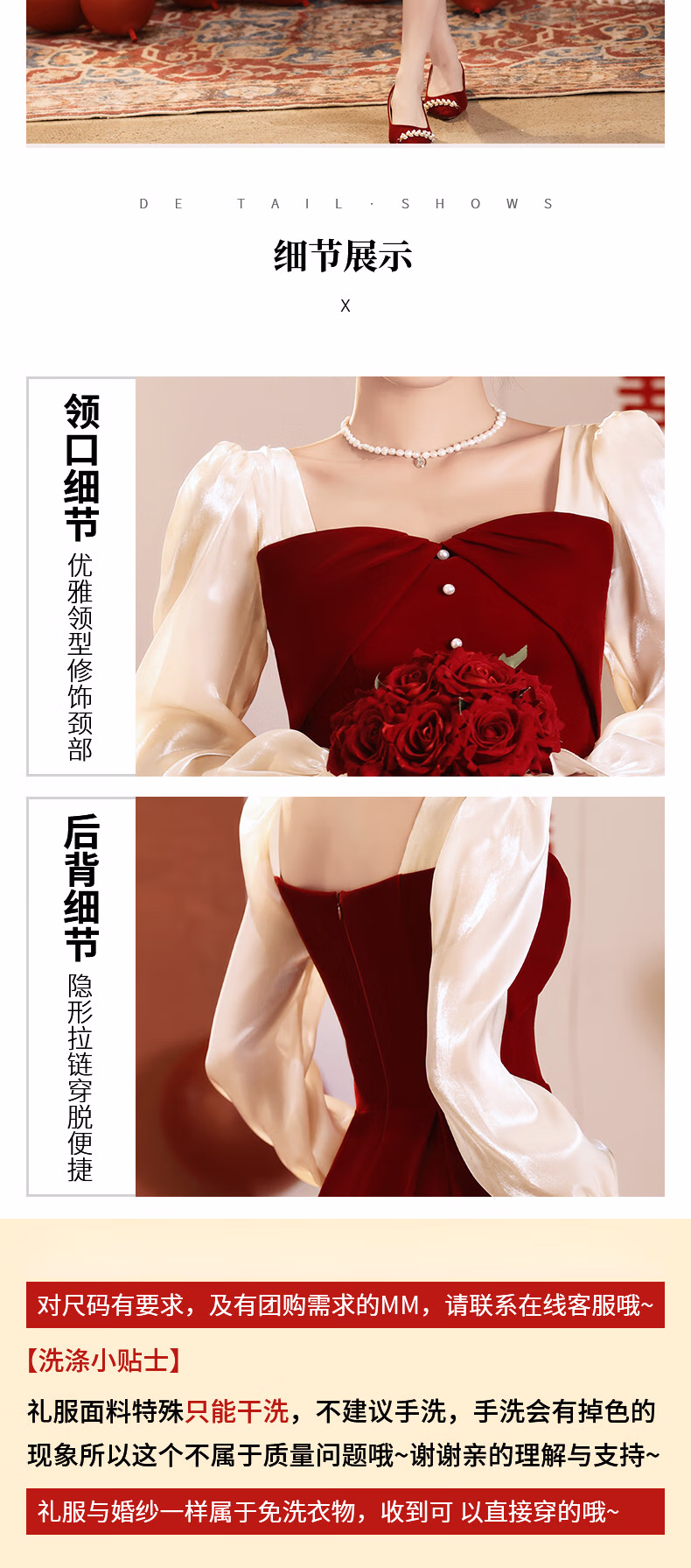 以欧(YIOU)敬酒服新娘酒红色小个子结婚礼服订婚连衣裙长袖平时可穿衣服6002 酒红色 XL (建议118-125斤)
